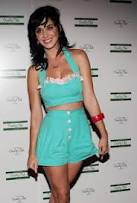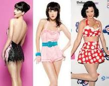 Katy adora peças com a cintura bem marcada, estampas divertidas, estampas de poás(bolinhas), óculos com molduras coloridas e divertidas de acrílico... mas sempre com toques sexys: